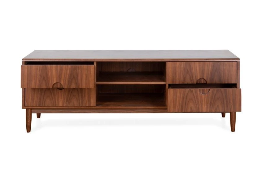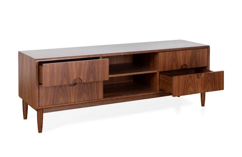 Open shelves, and 4 soft-close drawers for hidden storage.