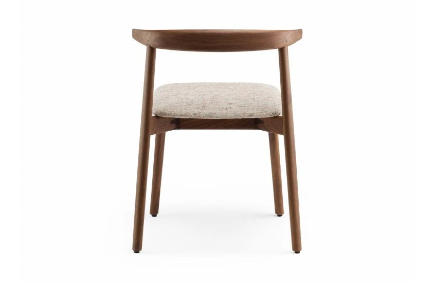 The smooth curve of the backrest elegantly showcases natural wood grain, while providing comfortable support.