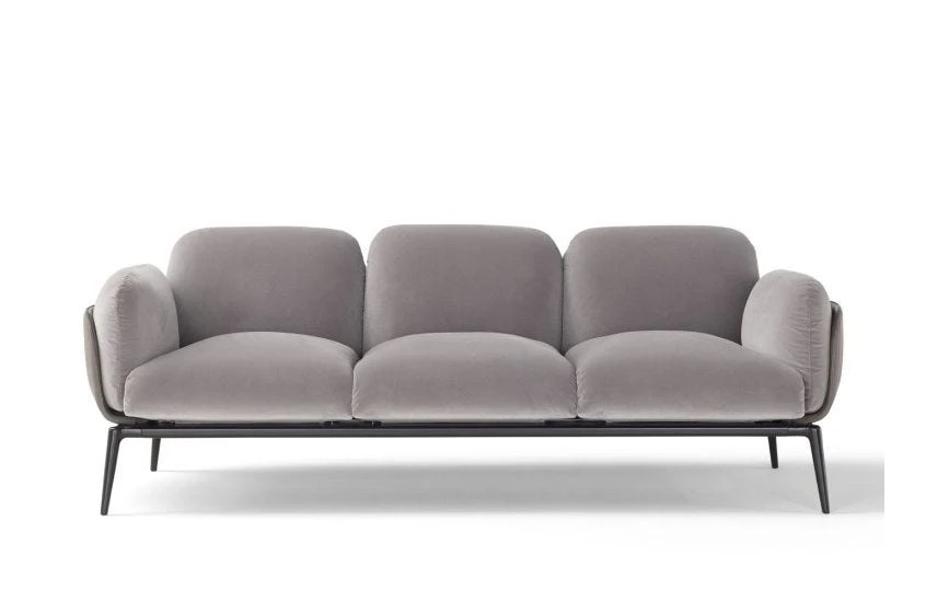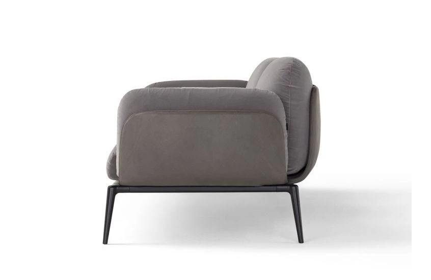 The strong personality of the BROOKLYN seats, is born out of the meeting between extremely innovative materials in the upholstery world, and retro lines that hint at the seats of old cinemas and Off-Broadway theatres. The structure lays on an lacquered aluminium subframe that features slender legs, living it an elegant lightness; the cuoio, leather or fabric frames are then of great impact, both on the side and back of the sofa, with their lightly rounded shapes housing the cushions in leather or fabric, themselves extremely soft, enveloping. The result is a seating system devoted to comfort and emotional design.