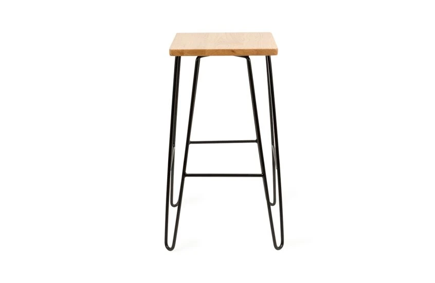 Ideal for those short on space but big on style, the Brunel bar stool is designed by Rob Scarlett exclusively for Heal’s. The industrial inspired profile pairs a solid American oak seat with black powder coated steel legs. Part of our bestselling Brunel range, this bar stool is designed to pair with the (sold separately).
