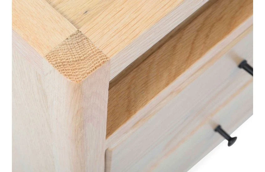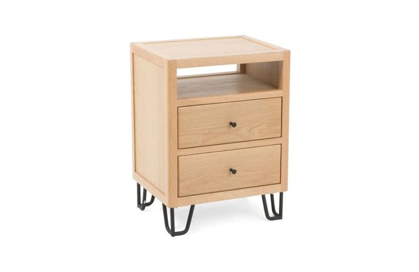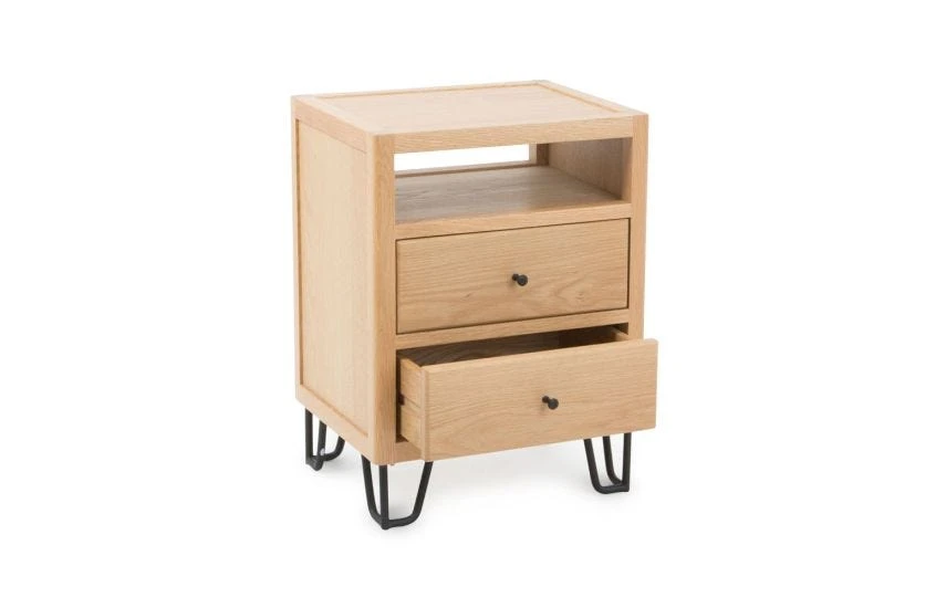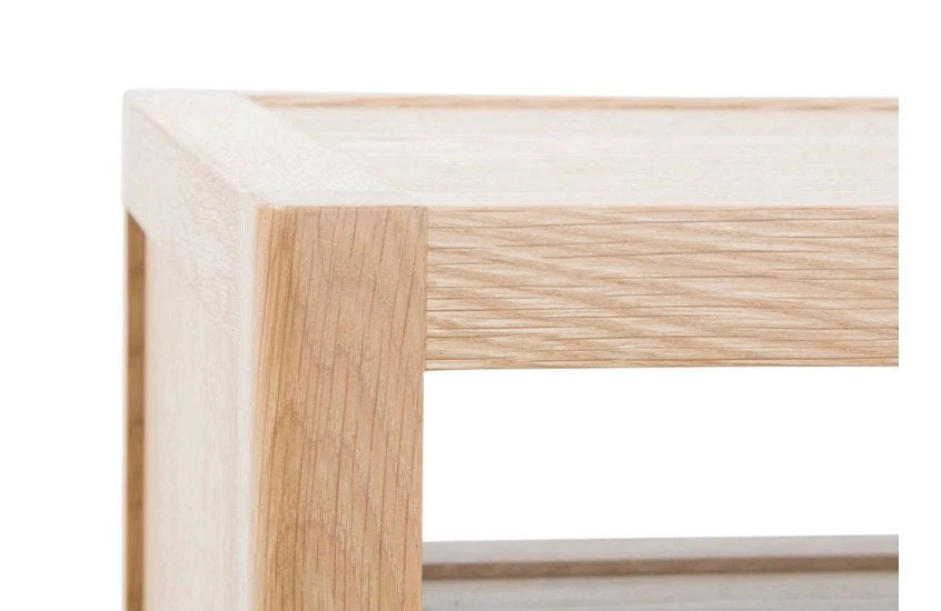 With expert hand joinery and softly curved edging throughout, two beautifully crafted deep drawers provide ample storage while a cutaway shelf is the ideal place to tuck away a watch, jewellery or book.