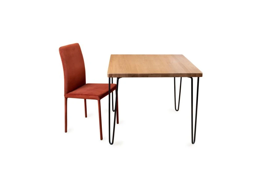 Powder coated metal legs pay homage to modernist design, their bent tubular form providing an industrial feel that blends perfectly with urbane interiors.