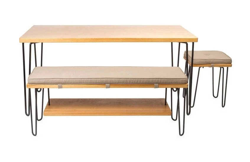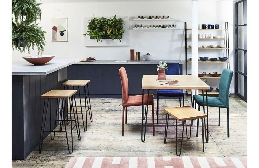 Part of Brunel Dining Range including stools and bench that fit perfectly in a modern dining room.