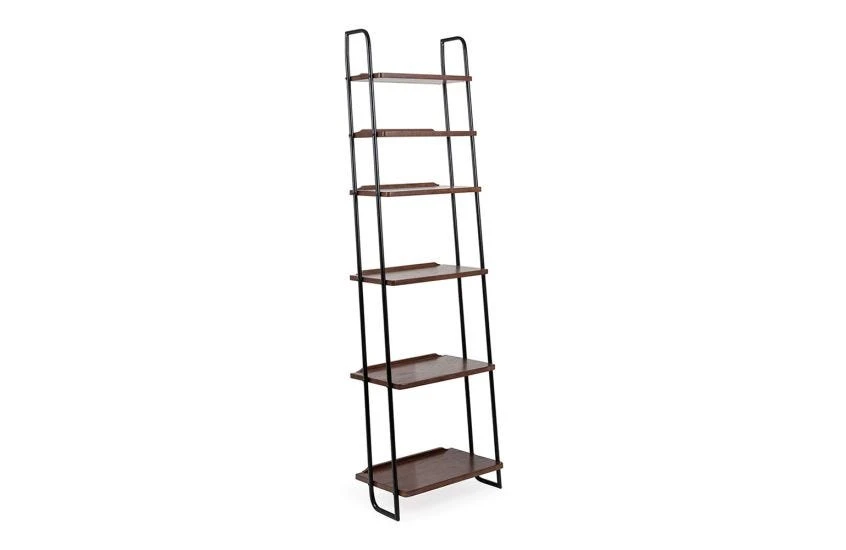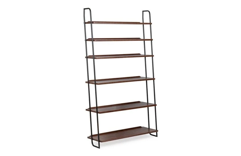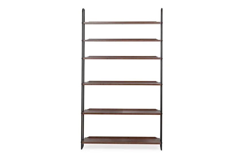 6 shelves crafted from solid dark American oak and features a lipped edge