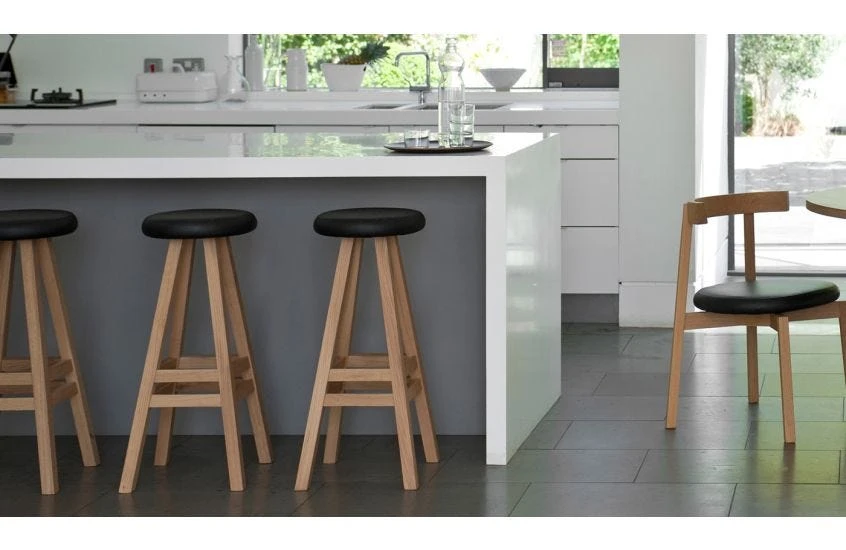 Originally designed for the Oki-Nami restaurant in Brighton, this modern stool mixes the attention to detail found within Japanese furniture craft with the heritage of modern European design. Made from a choice of light oak or rich walnut, the angled profile, matchstick legs and soft leather seat provide a serene sit that’s perfect for both the breakfast and cocktail bar.