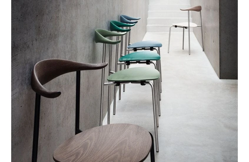 The design was initially developed by Wegner as a prototype with coloured legs. It was displayed at the international Helsingborg Exhibition in Sweden in 1955. Decades later, Carl Hansen & Søn put the chair into production in celebration of the 2014 centennial of Wegner’s birth.