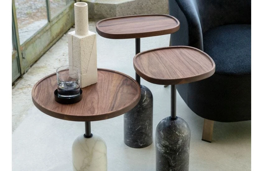 Expertly crafted by the Italian luxury furnisher brand Porada, this exquisitely Ekero side table ushers in all things high class. The curved, square table top is made from solid Canaletta walnut, chosen for its characterful and unique grain. Below the central pole in matt black, the cylindrical marble base is made in either Carrara White or Grigio Carnico marble. A luxury piece that fits any contemporary home, this Ekero Square Side Table is perfect in any living room, bedroom, or library.