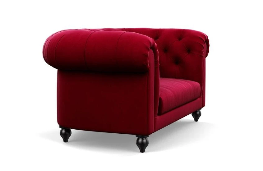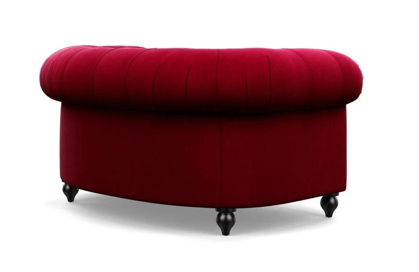 Wide scrolled arms and deep button back add to the meticulous design of this piece