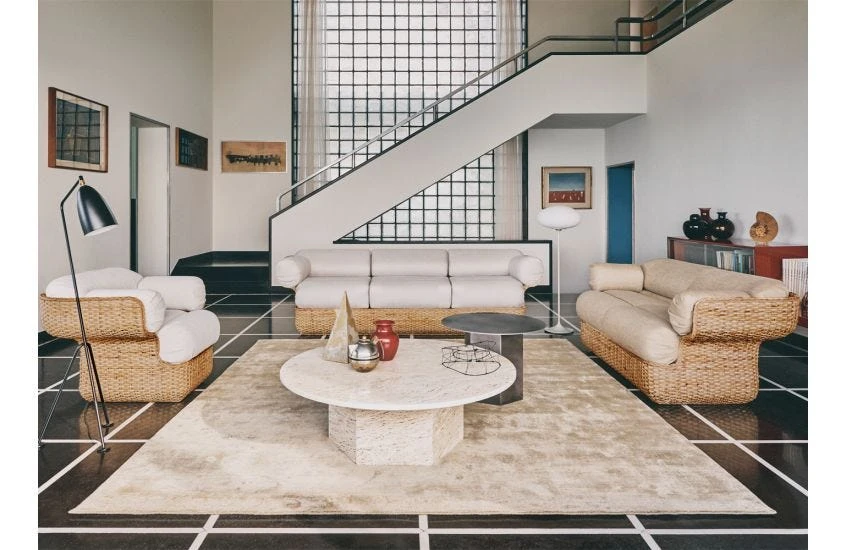 - Made in Italy from travertine, a form of limestone (similar to marble) found near natural mineral springs.