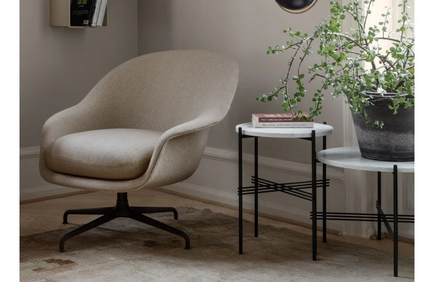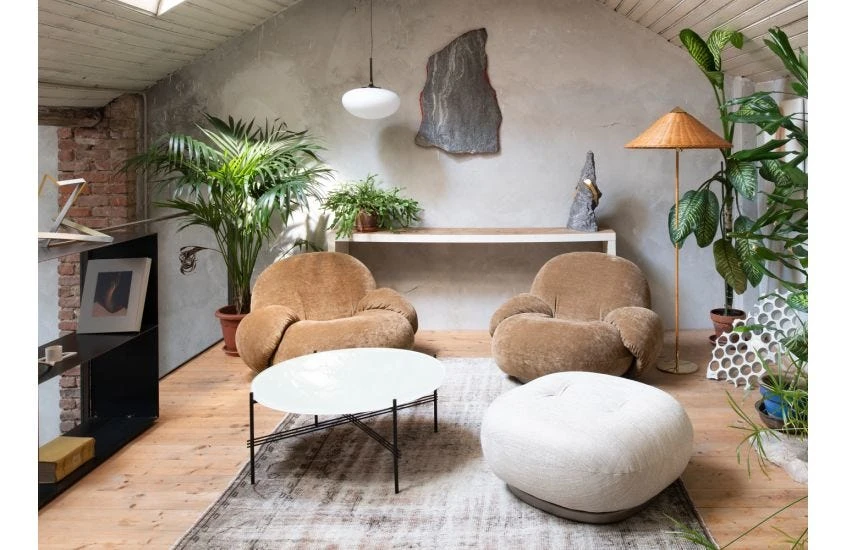 The TS Coffee Table by GamFratesi is extended from the classic TS Dining Table, made for the renowned restaurant The Standard, in Copenhagen – where not only was its name inspired, but also its form and material. It creates a sophisticated and sculptural aesthetic for any room, with characteristically slender legs, beautifully crossing details and contrasting solid round top.
