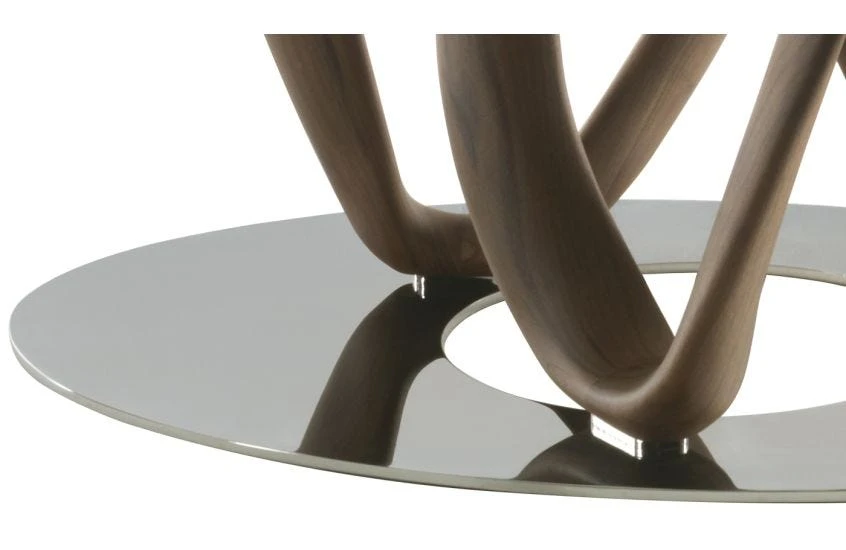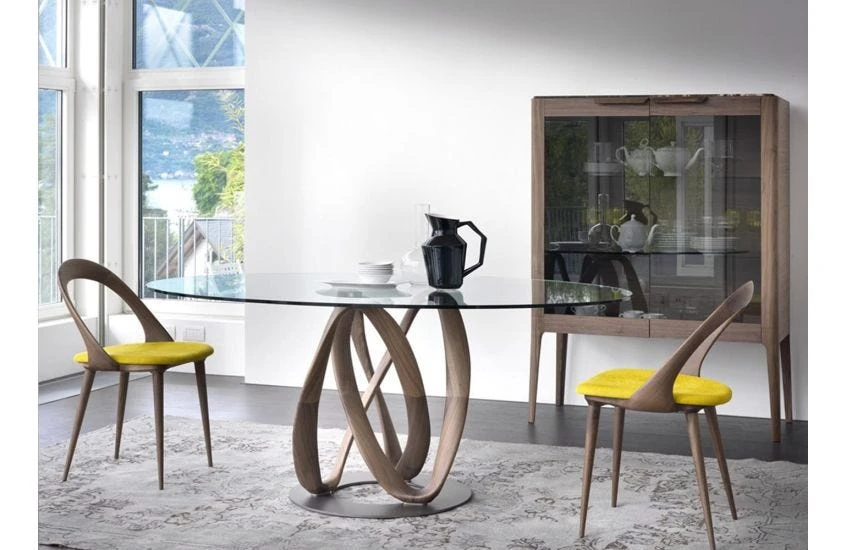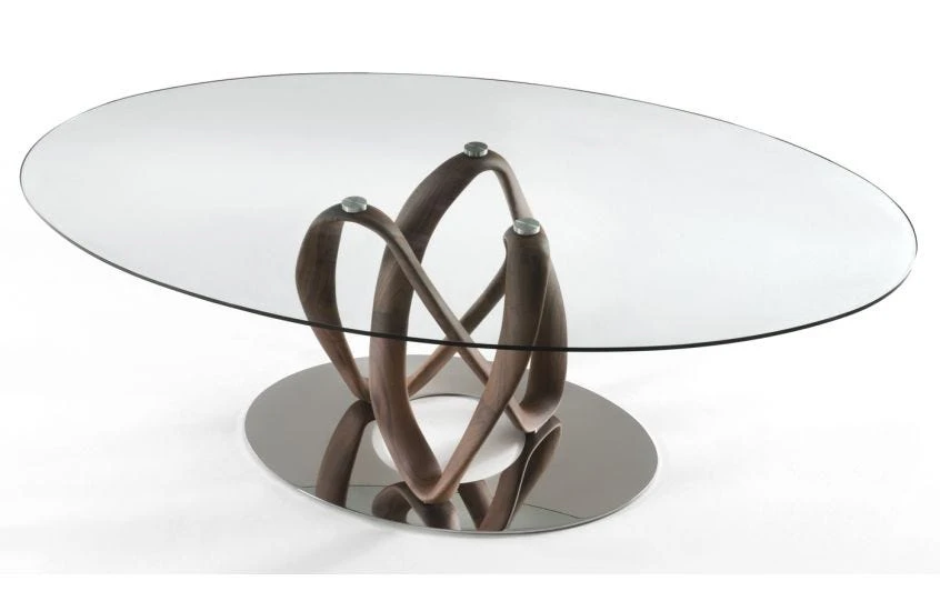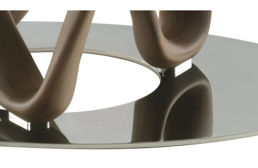 The sculptural Infinity Elliptical Table is carved from the finest Canaletta Walnut, its curved lines matched by oval tempered glass top and chromed metal disc. Designed by Stefano Bigi and made to order by Porada’s master Italian craftsmen, the Infinity Elliptical Table is an evolution of the popular Infinity range providing the ideal dining table.