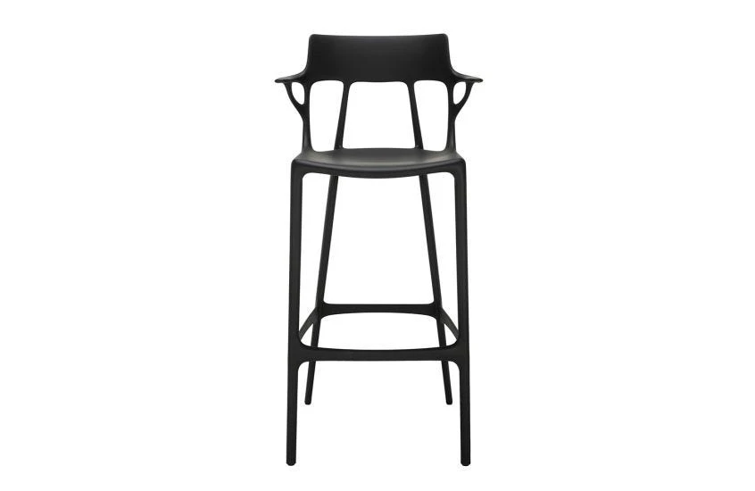 Philippe Starck designed the AI Stool for Kartell using design software developed by Autodesk. Starck used this artificial intelligence software to create a robust and stable stool using minimal materials. By using less materials the design minimises waste and helps limit its impact on the environment. The injection-moulded stool is crafted using recycled thermoplastic taken from production offcuts. The stool is suited to both indoor and outdoor use and available in two heights to meet all needs.