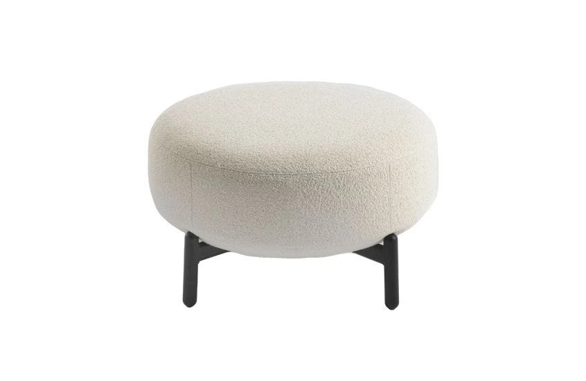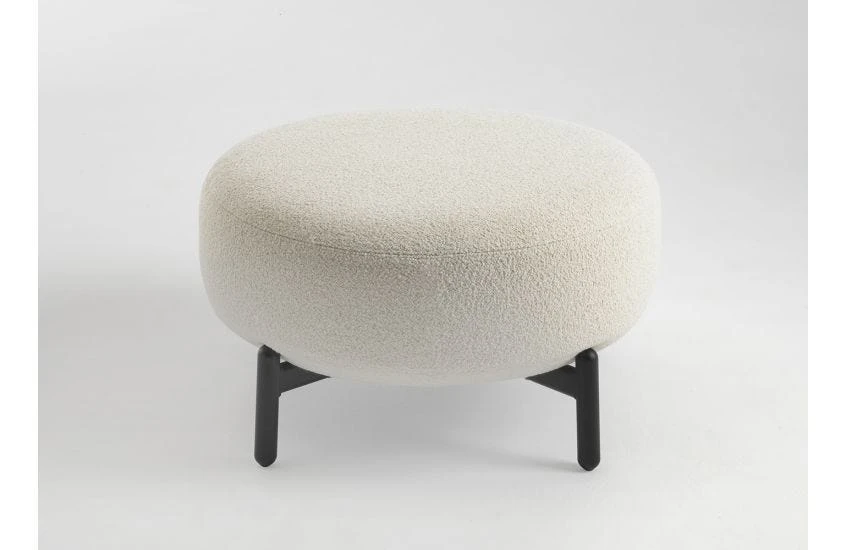 Sofa, armchair and pouffe come in soft bouclé fabric.