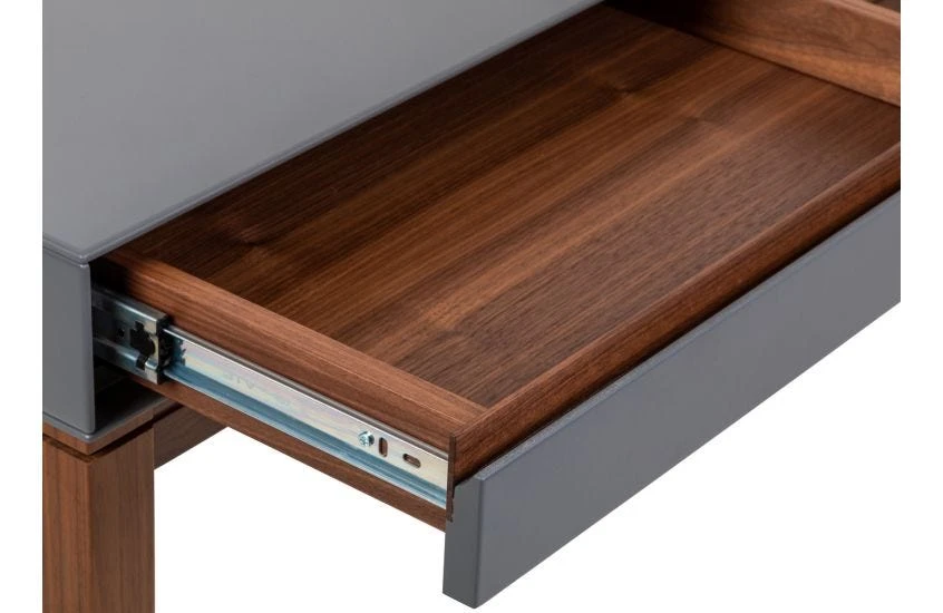 The pairing of deep walnut tones with a matt painted grey finish gives a cool and contemporary timeless appeal.