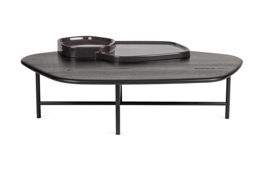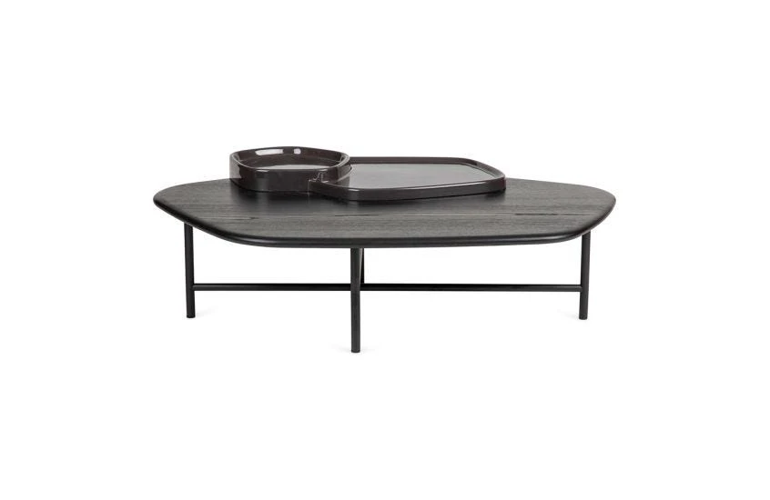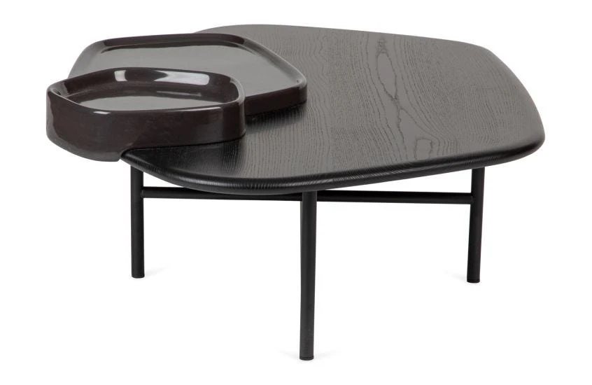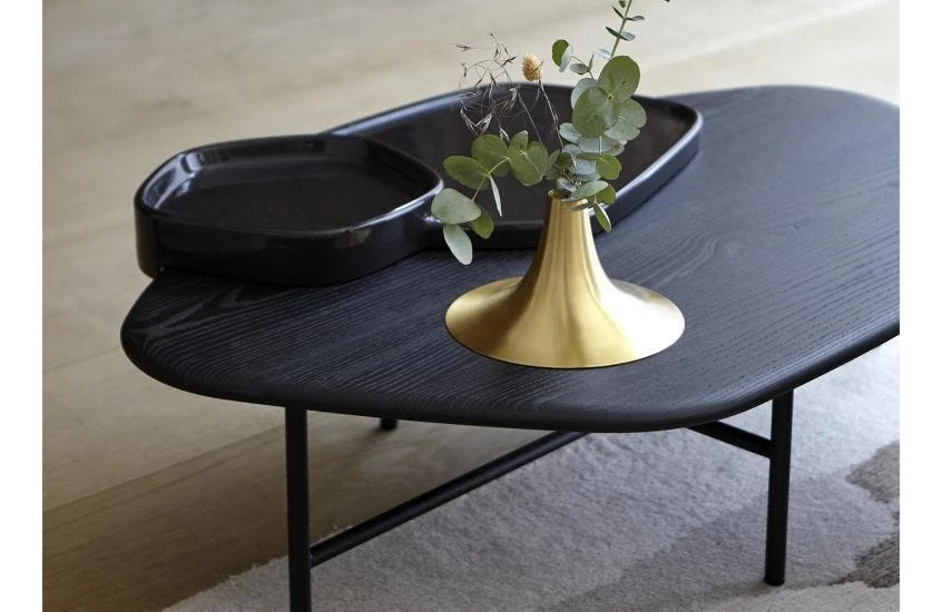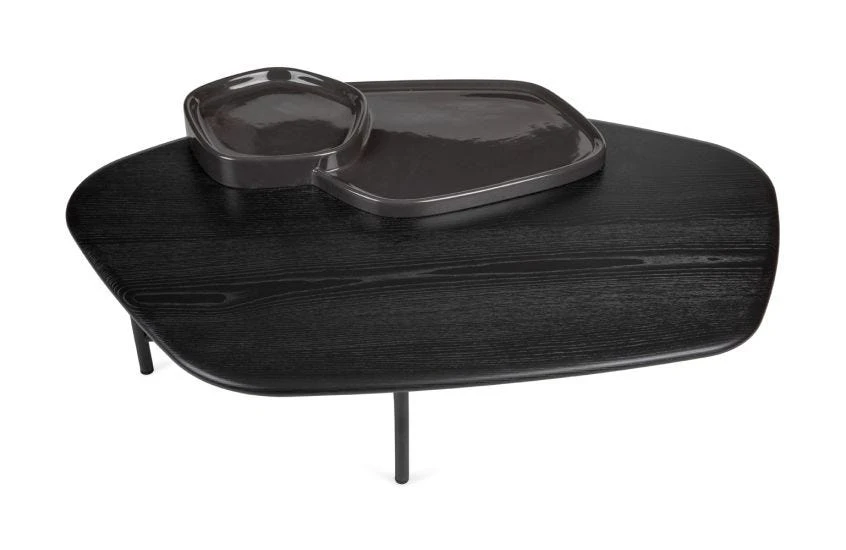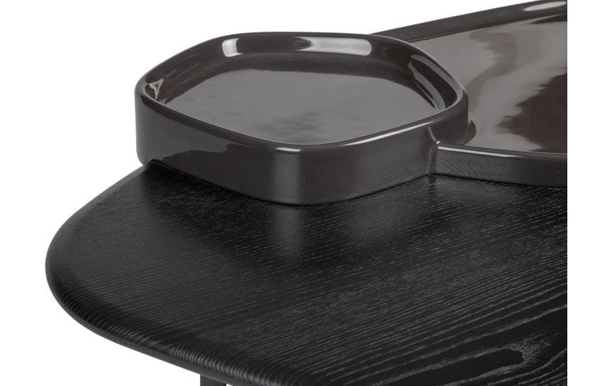 Satin varnished tabletop crafted from solid ash in a black finish.