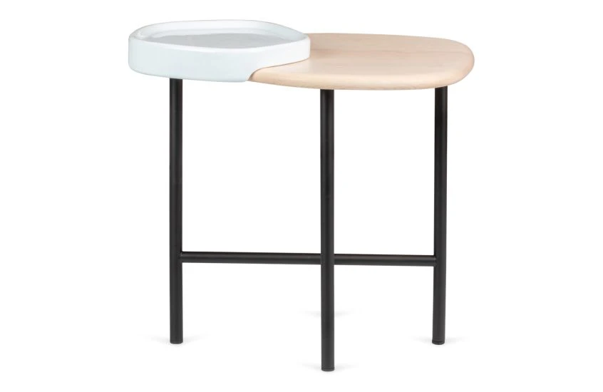 Designed by Sebastian Herkner for Ligne Roset, the Lewa Occasional Table merges natural ash with moulded ceramic to beautiful effect. Herkner looked to nature for his design, mimicking the basalt columns that form on volcanoes when lava cools. The surface of the Lewa is divided into separate sections, coupling a satin varnished ash tabletop with a sculpted ceramic tray in white. Its edges are high enough to hold water and decorative flowers, so you can even use the table to create a mini Japanese zen bowl.