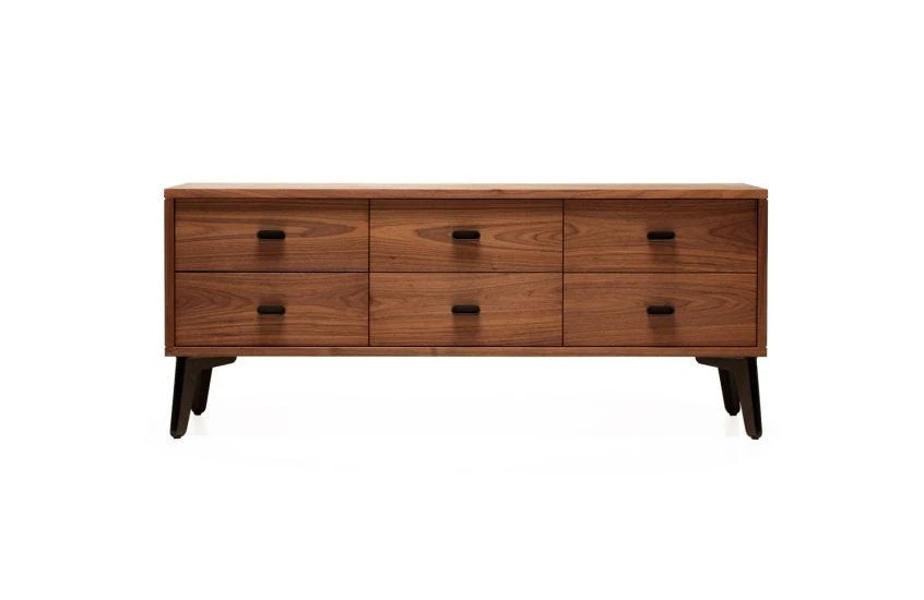 Good design is about bringing together seemingly juxtaposing elements to create one harmonious statement. Studiously designed by Matthew Hilton, the McQueen does just that, blending industrial style cast-iron legs with the contemporary grid of a six drawer walnut frame to produce eclectic storage space for the bedroom.
