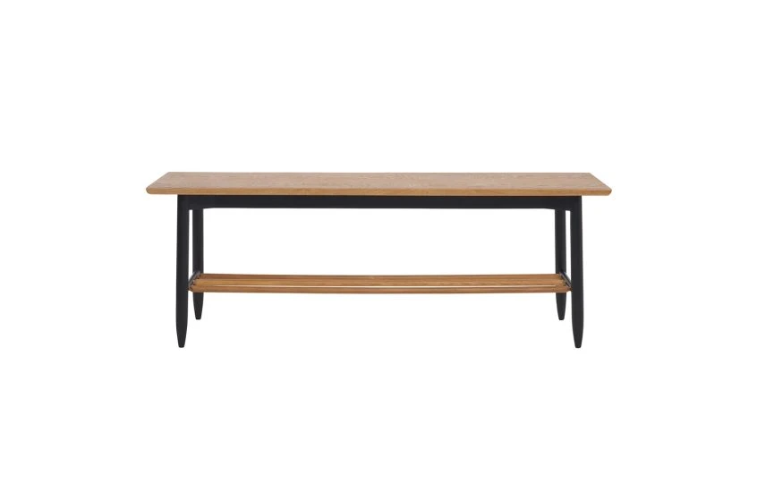 Crafted from solid oak and finished with black statement tapered legs.