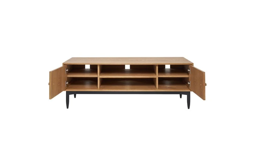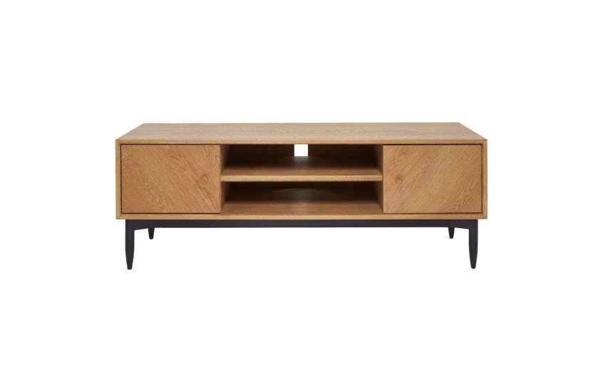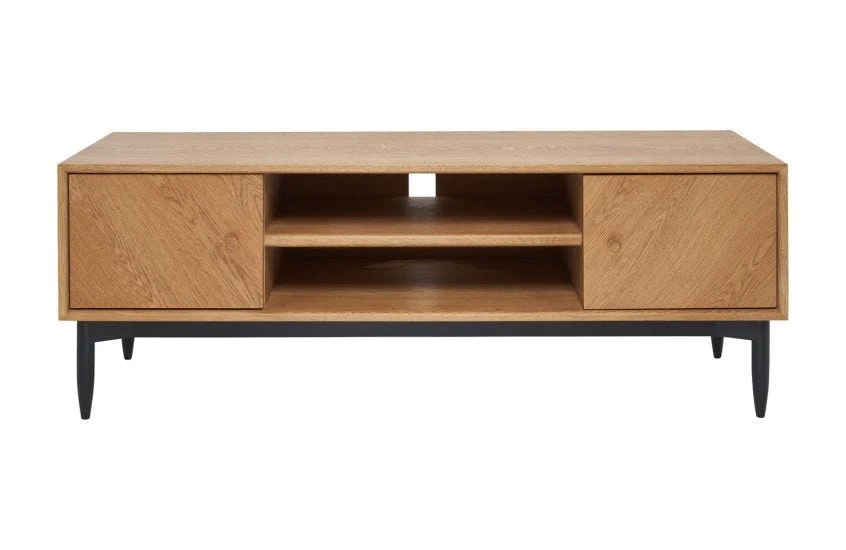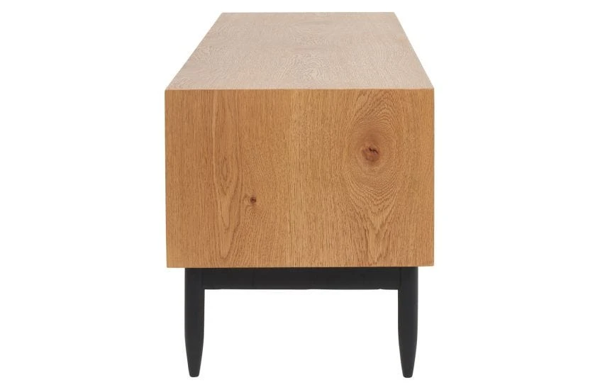 Unit stands on tapered black legs, creating a contemporary and streamlined silhouette.