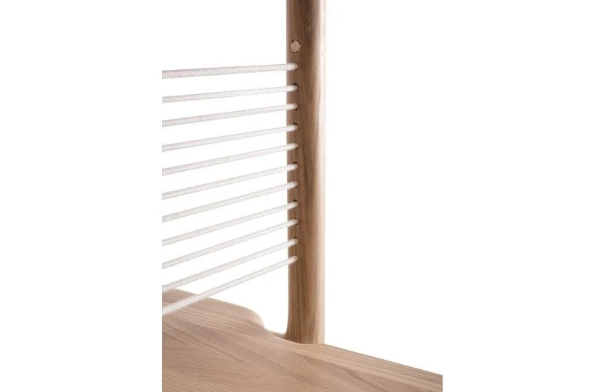 Crafted from solid oak and available in two sizes, the room divider is finished with hand-tied elastic cotton rope.