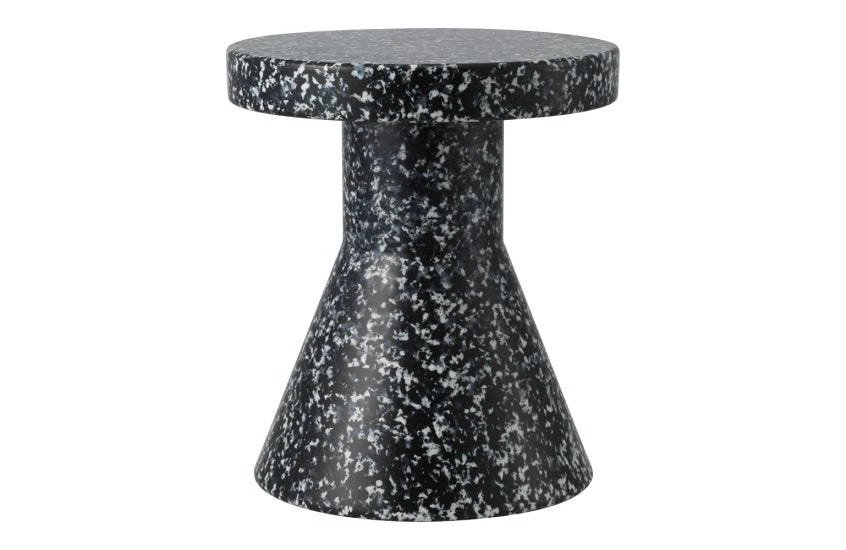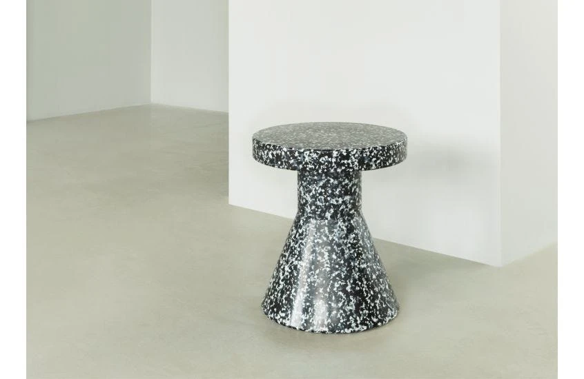 The straightforward, utilitarian look contrasts with the pixelated surface made up of small bits of 100% recycled household and industrial plastic.