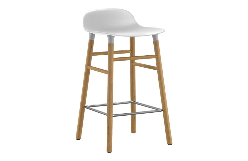 To achieve this seamless, integrated look, a new and innovative solution for gathering the seat with the legs has been developed. The curved plastic seat and frame of oak, walnut or steel are naturally integrated with the seat using a unique cup system. The plastic seat and wood or steel legs meet elegantly, accentuating the high quality craftsmanship and the simplicity of the Scandinavian furniture design.