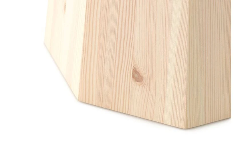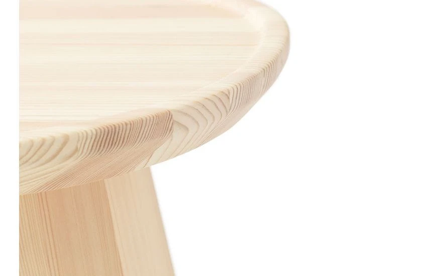 The choice of pinewood sets the tone for the design of the Pine tables. The tables gain a pleasing organic quality from the wood’s distinctive grain, and the overlooked wood species is given new life in the playful form.