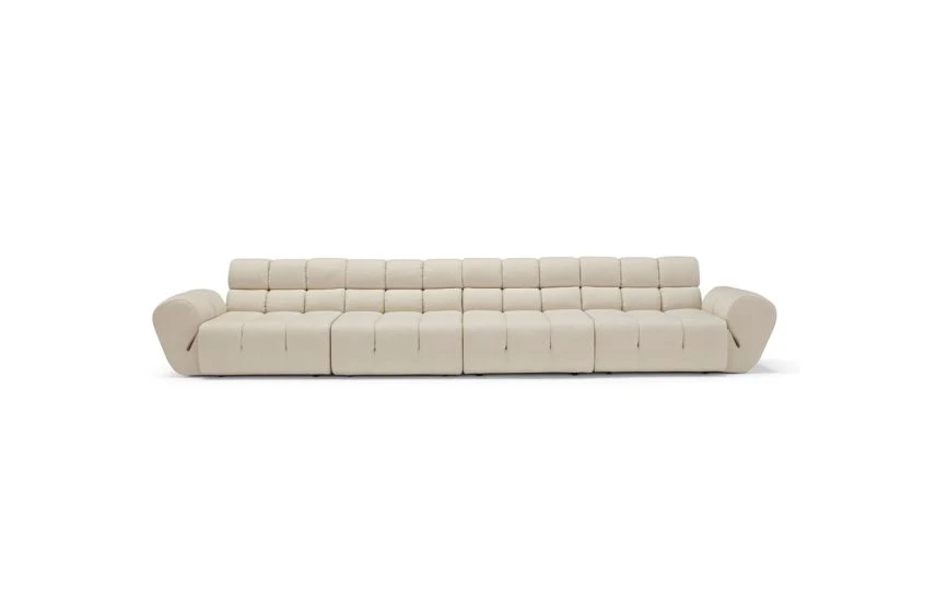 Not just a sofa, but its new an deeper interpretation, which has the goal to give back to the living room, in its form and concept, its primary function inside the house. It is the word “hospitality”, in fact, to give origin to the 4 modular elements that, juxtaposed, design varied compositions. “Palmo” can take numerous dimensions according to the spaces and needs: from the most classic and traditional shapes, to free and irregular compositions. Watching closely the new proposal from Amura, it is evident in its design, in the enveloping softness of its upholstery and in the folds of the coverage, the hint to a hand that holds something, wrapping up on itself, in an explicit connection to the concept of “hospitality”. Hence the name “Palmo”, an element that assumes the same role, welcoming one in one own’s home intimacy.