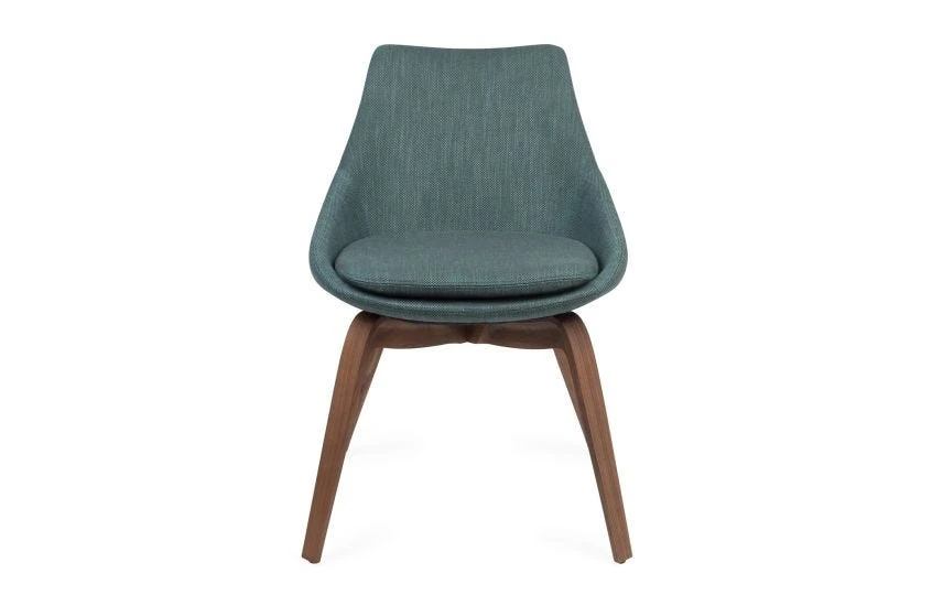 Designed by Maurizio Marconato and Terry Zappa, the Penelope Chair is an enveloping upholstered seat that’s perfect for the contemporary dining room. Each chair is made to order by Poradas master Italian craftsmen using the finest solid canaletta walnut with the seat shell upholstered in a tight weave of black and teal cotton linen blend.