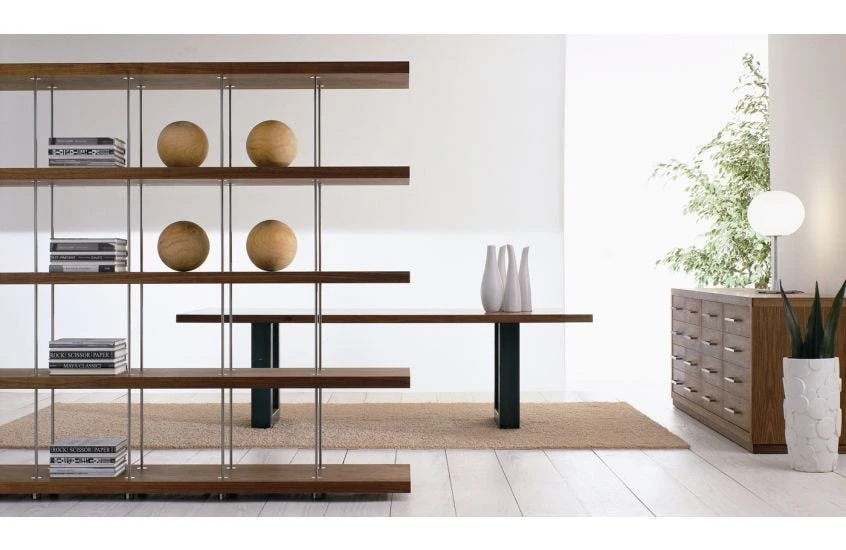 World renowned for designing pioneering buildings such as the Centre Pompidou in Paris and London’s the Shard, Renzo Piano brings his architectural approach to materials to this unique collaboration with furniture specialists Riva 1920. Pairing the craftsmanship of walnut with tubular metal form, this elegant bookshelf creates a towering grid of open storage.