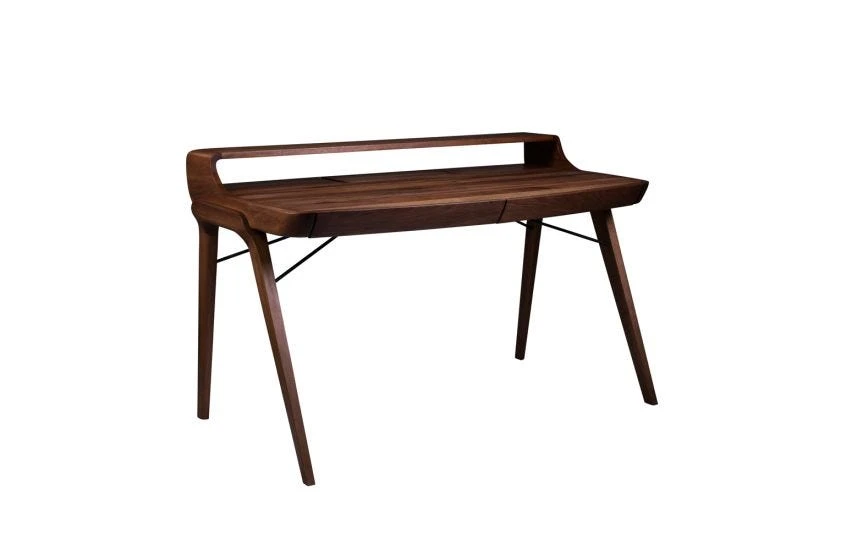 Two shallow drawers provide hidden space, and the elevated shelf allows for items to be kept separate from your working space.