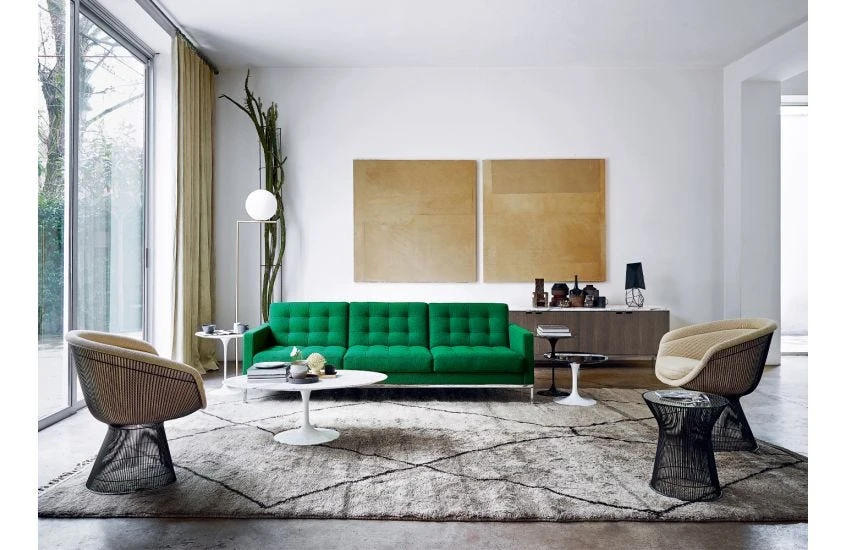 In 1966, the Platner Collection captured the ‘decorative, gentle, graceful’ shapes that were beginning to infiltrate the modern vocabulary. The iconic Platner Side Table is created by welding curved steel rods to circular frames, simultaneously serving as structure and ornament.