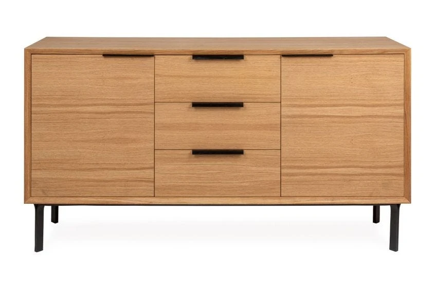 Created exclusively for Heal’s by British designer Noel Batt, the Stockholm Sideboard is available in a selection of oak and walnut finishes. Solid and veneered wood combined with expert craftsmanship lend the sideboard a luxurious finish, whilst the sleek metal accents and mitre-join leg that adorn the front of this sideboard lend it a refined and contemporary finish. Stockholm will make a refined yet practical addition to your home thanks to its three drawers and two cupboards worth of storage.