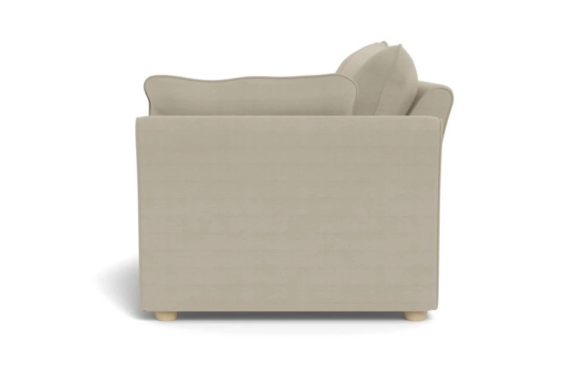 Solid beech feet appear hidden under the Tailor. Available in Black or Natural.