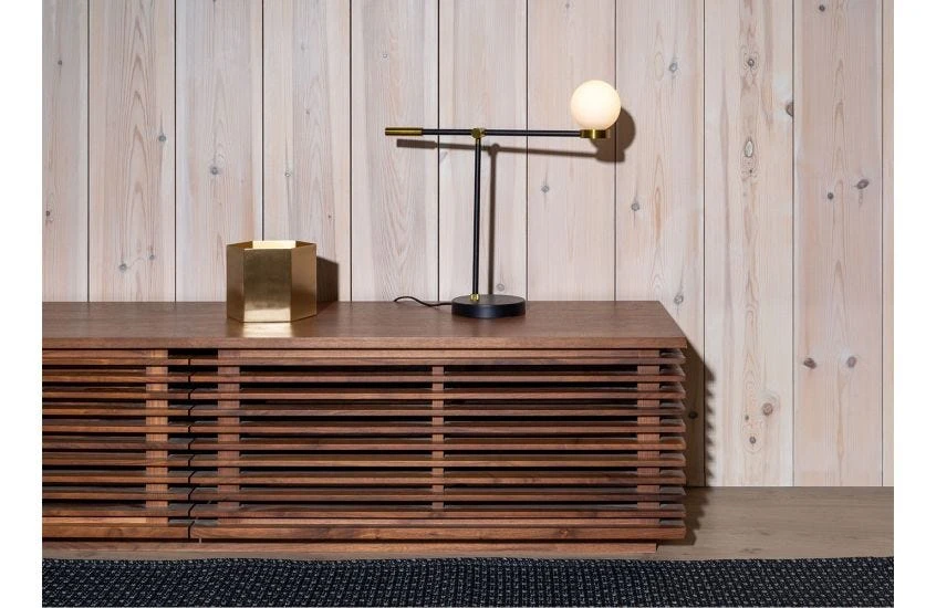 Striking design inspired by sleek stereo consoles from the 1960s.