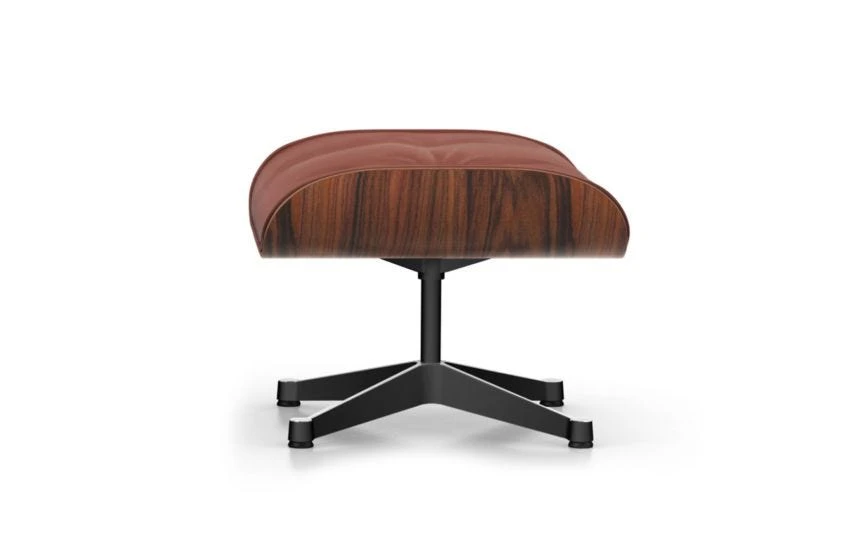 This edition combines Vitra’s premium cowhide leather in a brandy hue with a Santos Palisander wood shell and a black polished base.