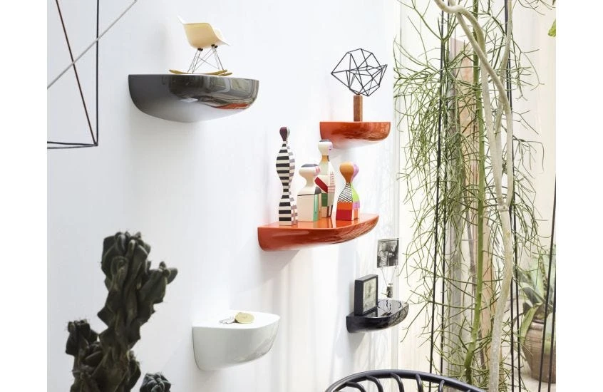 Designed in response to small spaces, Corniches provides a platform for display to perk up a room. Moulded into an organic series of shapes, this original design by French duo the Bouroullec brothers creates isolated forms along the wall that can be arranged in your own unique combination.