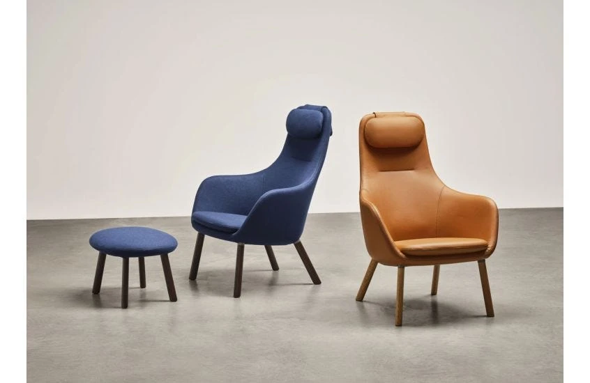 fashionable design, but instead represent the update and perfection of a familiar typology – as demonstrated with the HAL Lounge Chair, which is Morrison‘s reinterpretation of the upholstered four-legged high-backed armchair. Despite its compact dimensions, the lounge chair is exceptionally comfortable. It comes with soft loose seat and neck cushions or, if preferred, with an integrated seat cushion.