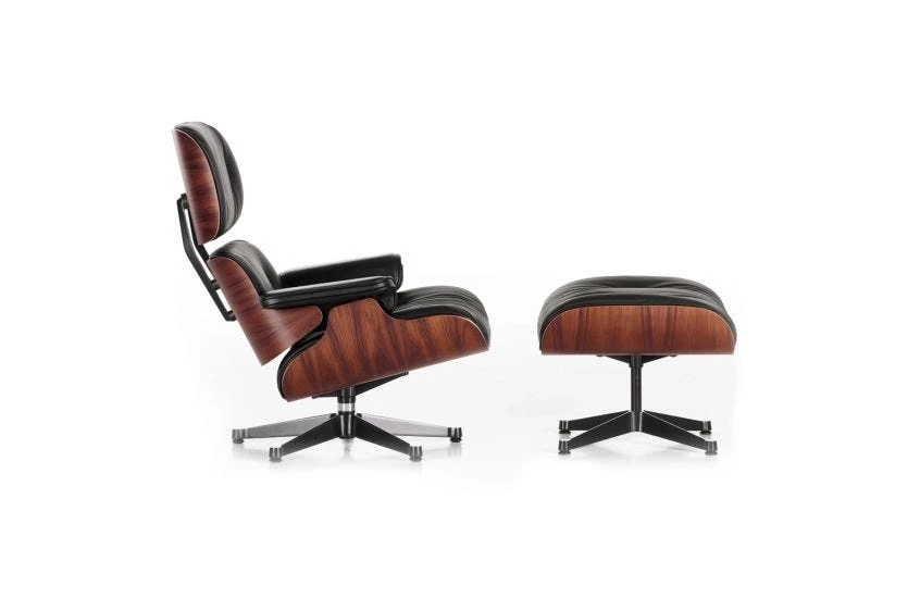 Personifying mid-century design, this ‘updated version of the old English club chair’ set a benchmark in the history of furniture manufacturing. Accompanied by a coordinating ottoman, this edition combines Vitra’s premium cowhide leather in black with a Santos Palisander wood shell.